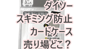 ダイソーのスキミング防止カードケースの売り場はどこ?文具コーナー内・電気コーナー近くをチェック結論からお伝えします。ダイソーで販売されているスキミング防止カードケース(税込み110円)は、文具コーナー内の名刺入れ・カードファイルと同じ棚にあ...