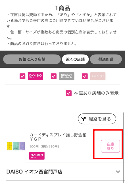 DAISO公式アプリで自分が来店しているお店の在庫状況を確認する方法