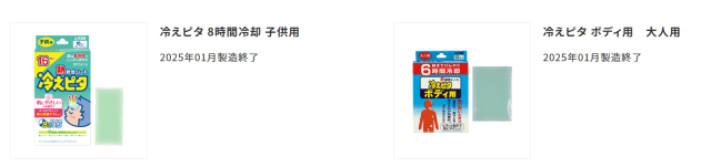 ライオンの公式HP内製造終了商品一覧ページに冷えピタシリーズも並んでいました。