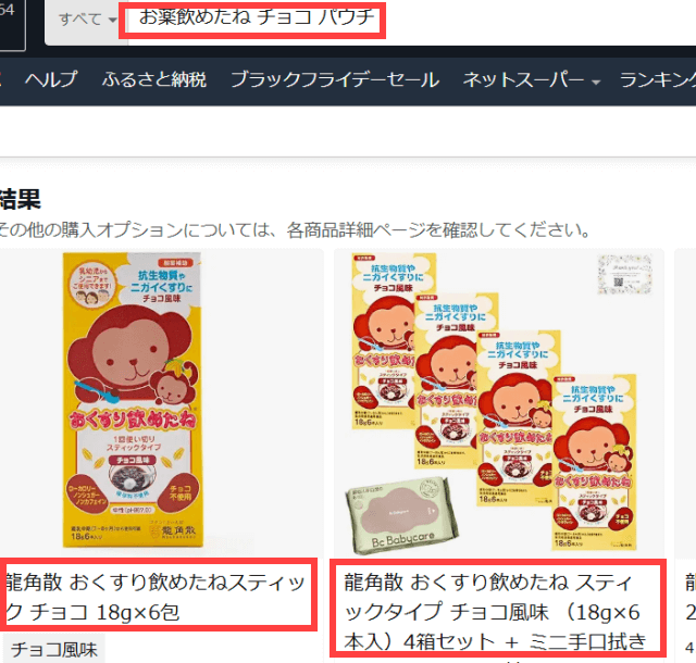 残念ながら「おくすり飲めたね チョコ味 パウチ」と検索してもスティックタイプしか出てきませんでした。