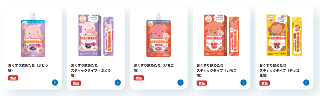 龍角散HPにもおくすり飲めたねシリーズの一員としていちご・ブドウ味とともに並んでいます。