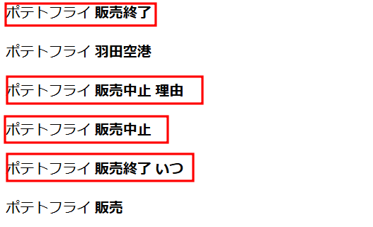 ポテトフライ、と検索すると販売終了と表示される。