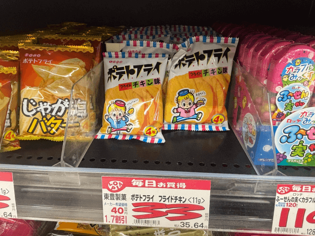 ポテトフライは駄菓子屋やスーパーで販売されているものの、 仕入れ戦略や棚スペースの関係で 一部の店舗で置かれなくなる時期があります。